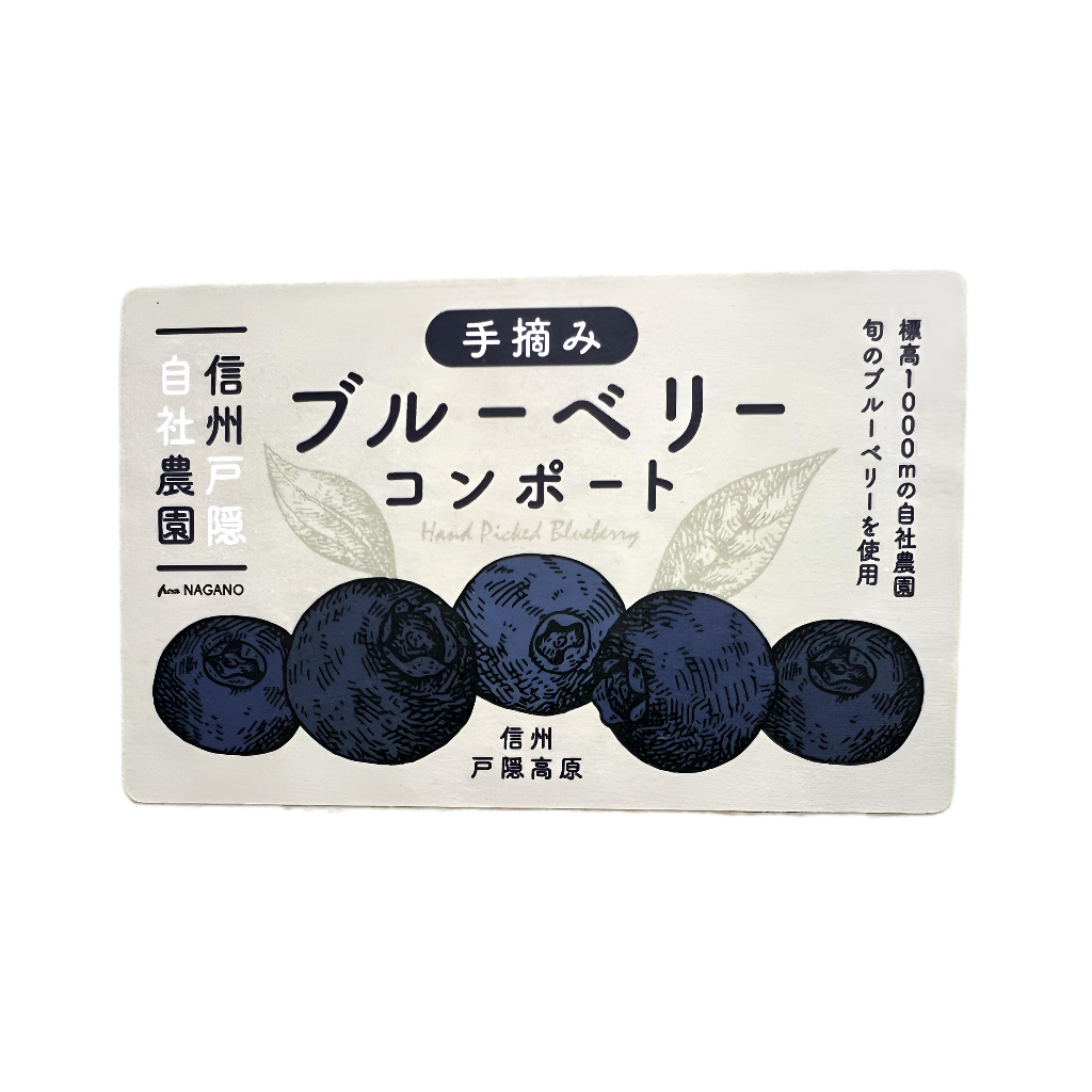 戸隠の自社農園で丁寧に1粒1つ手摘みしたブルーベリーを、素材の持ち味をそのまま味わっていただけるようにコンポートにしました。