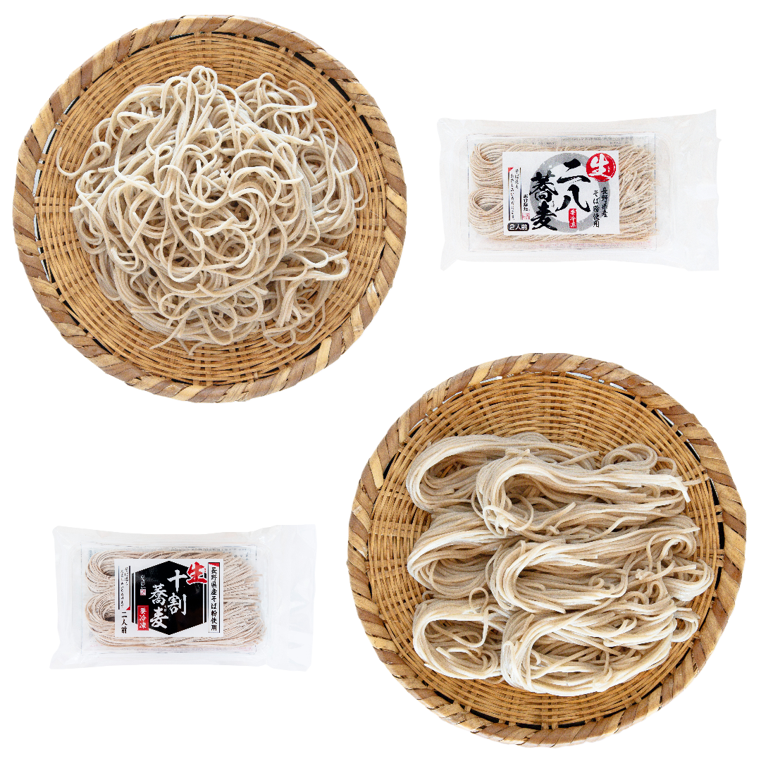 | 原材料名 | 〔十割蕎麦〕そば粉(そば(長野県産))、打粉(そば(国産)) 〔二八蕎麦〕そば粉(そば(長野県産))、小麦粉、小麦たんぱく |