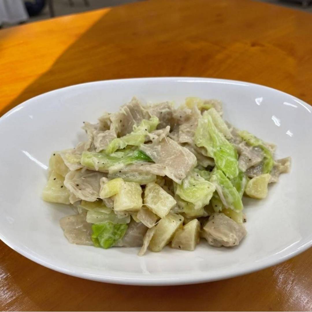 - ⑦キャベツ、ジャガイモを1口サイズに切り、塩1つまみを加えた沸騰したお湯に入れ5分ほど茹でる。