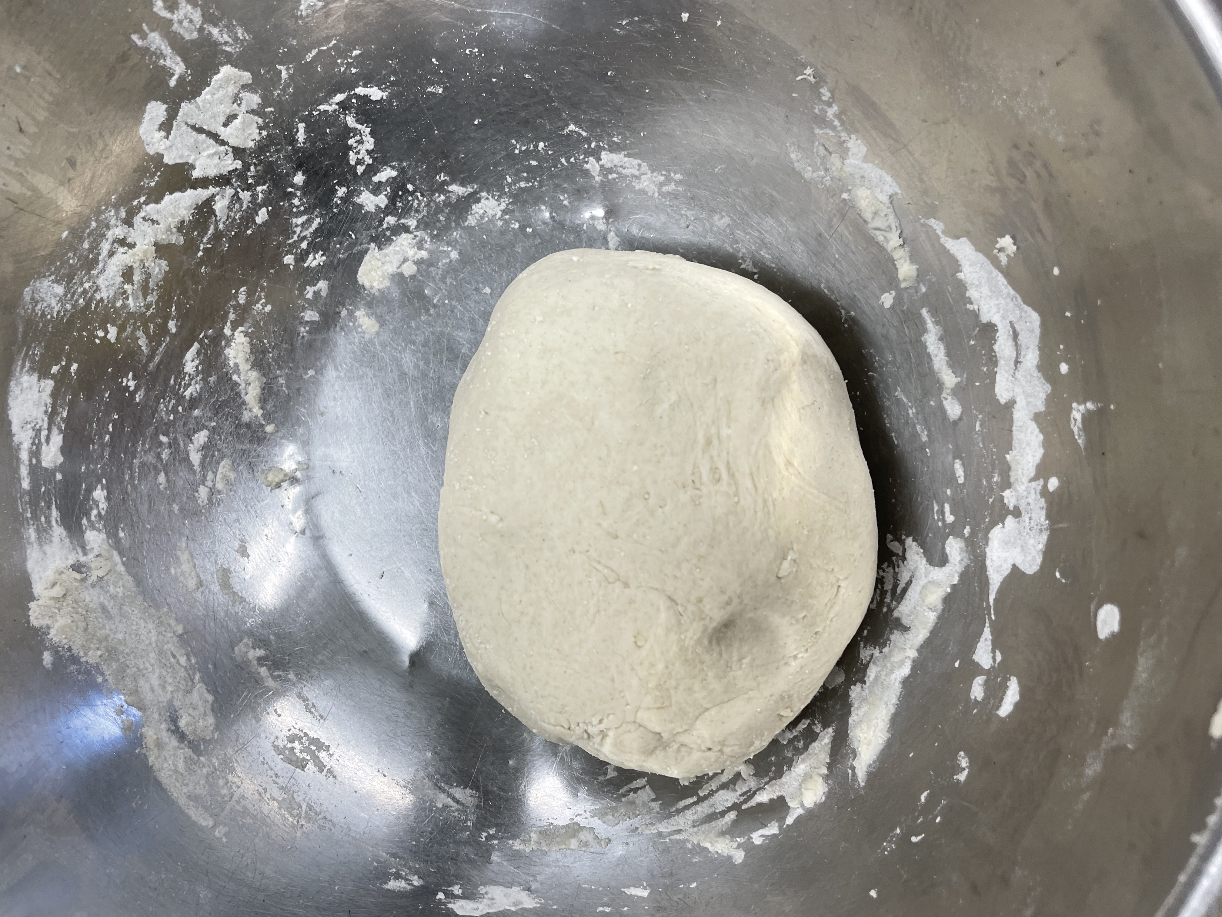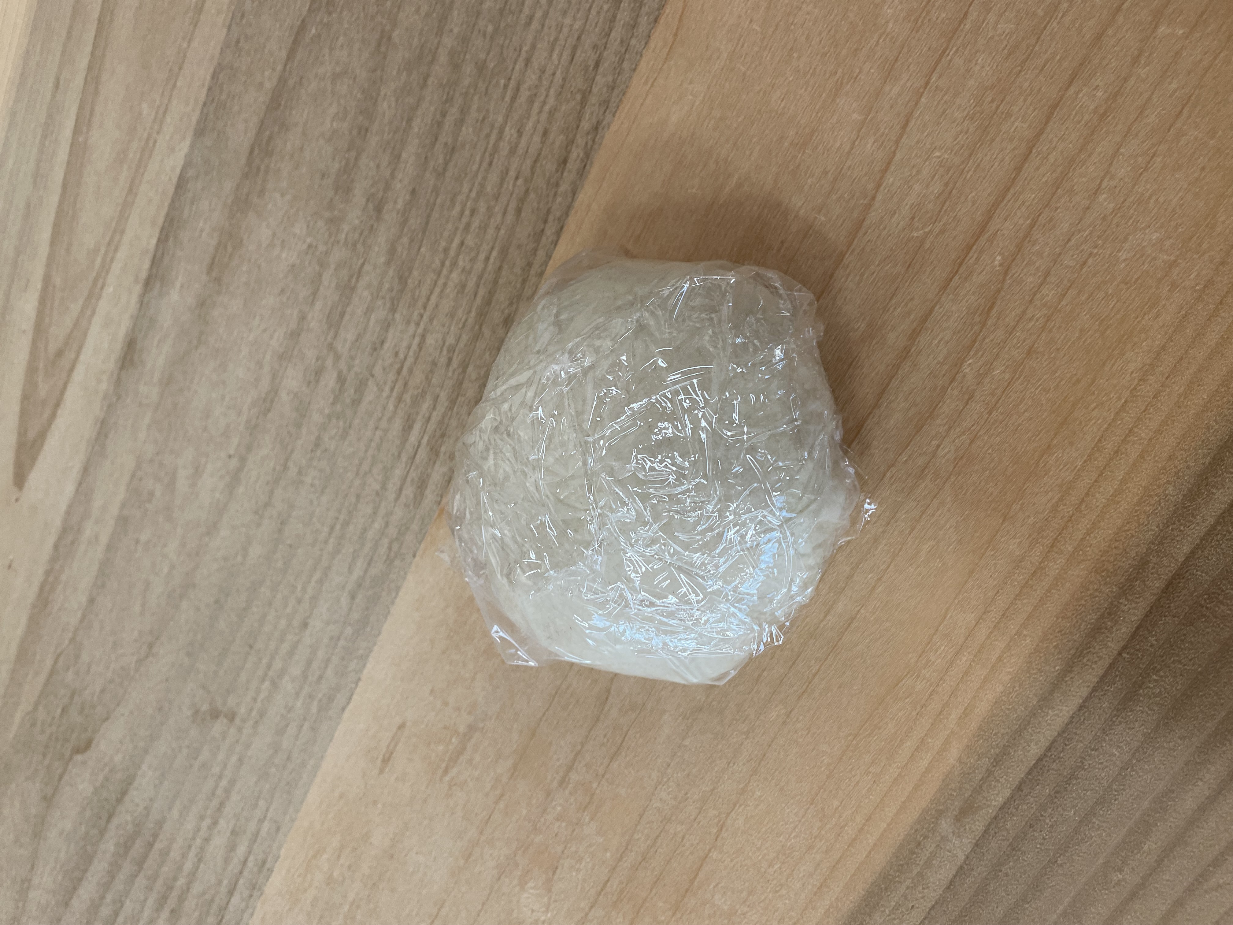 - ④つやが出るまで練ったら生地を丸め、ラップに包んで5分ほど休ませる。